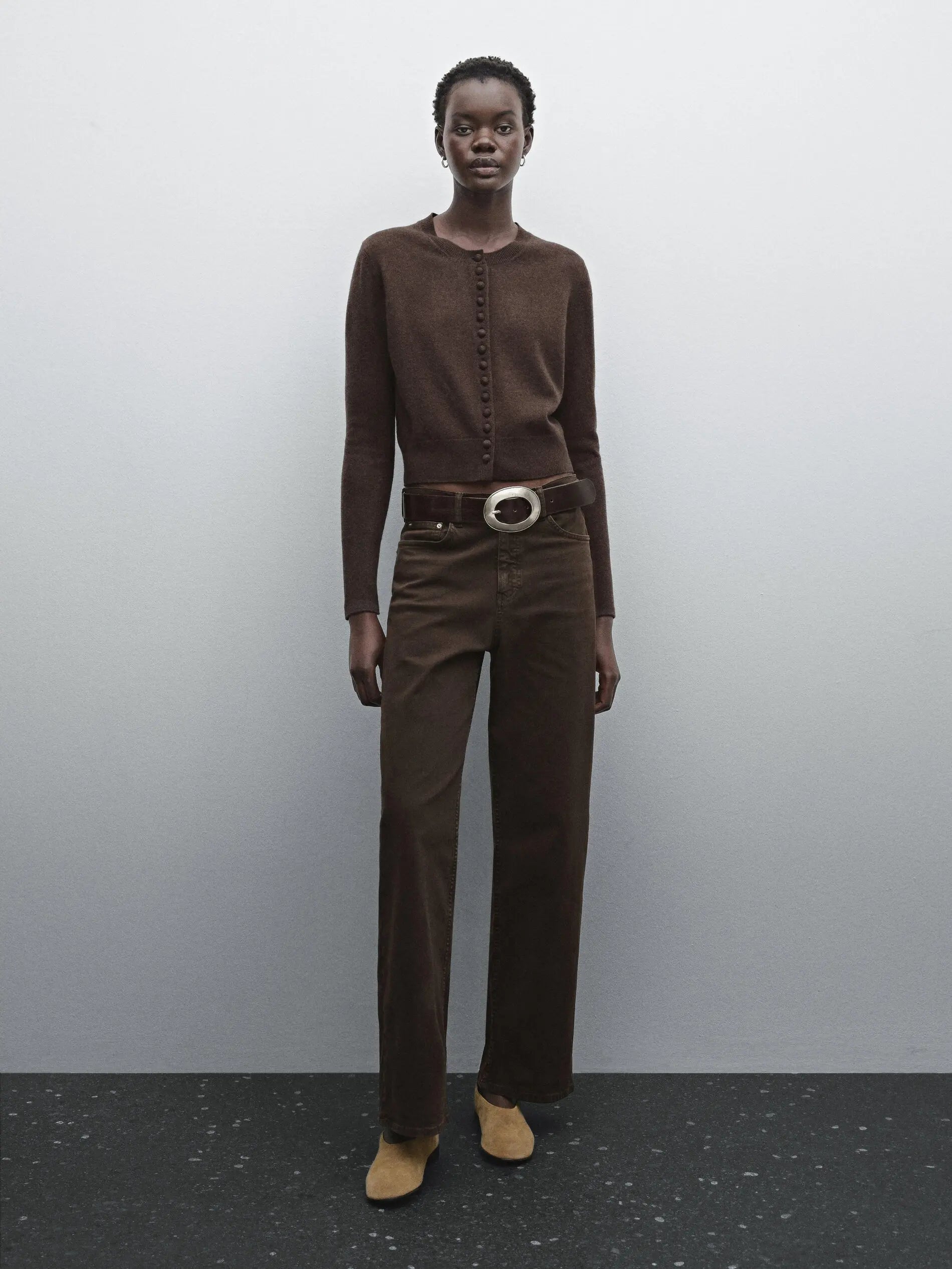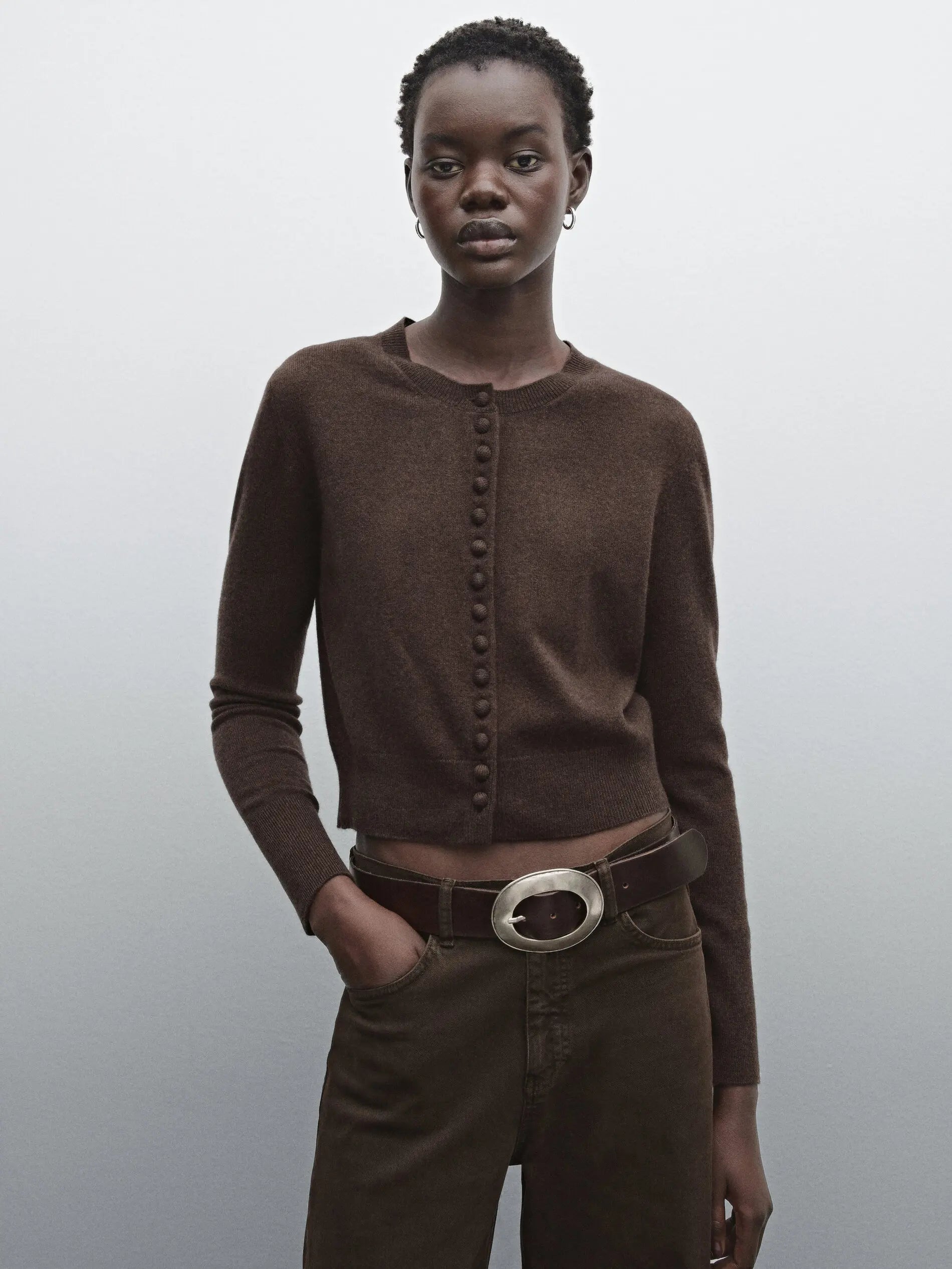 Designed with a slightly cropped, slim shape, it pairs effortlessly with high-waisted trousers, denim, or layered essentials. Its lightweight structure makes it ideal for transitional seasons, offering a polished, quiet-luxury finish for everyday styling.
